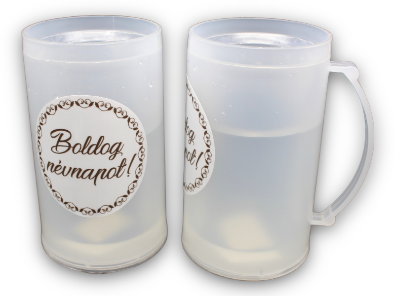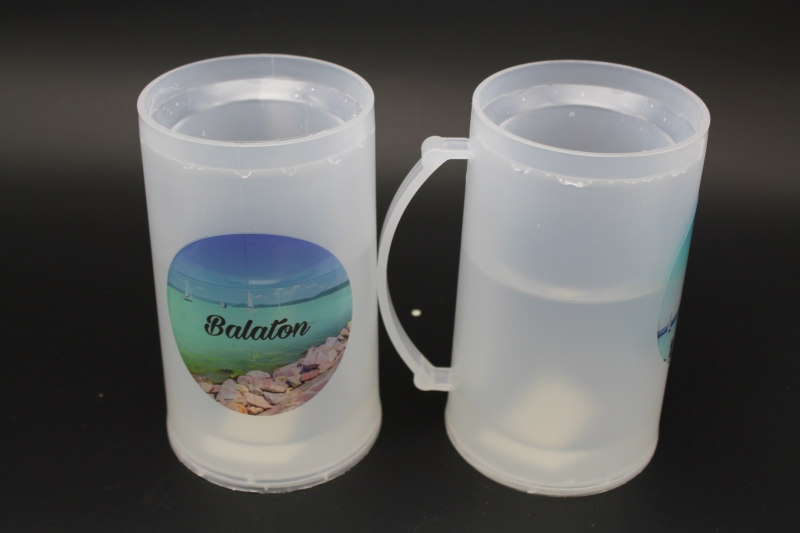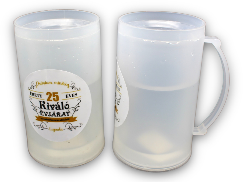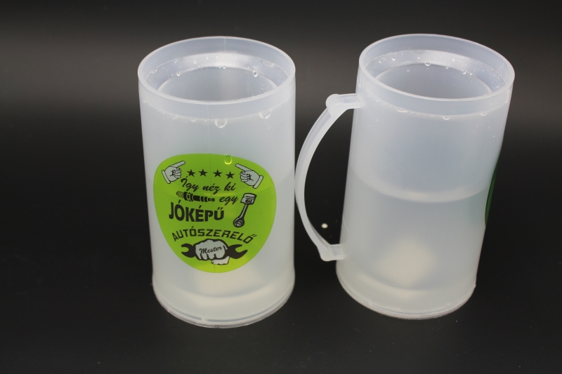 Leírás: 350ml anyaga:műanyag. a korsó fagyasztóban lehűthető,ezáltal a benne lévő italt hidegen tartja.